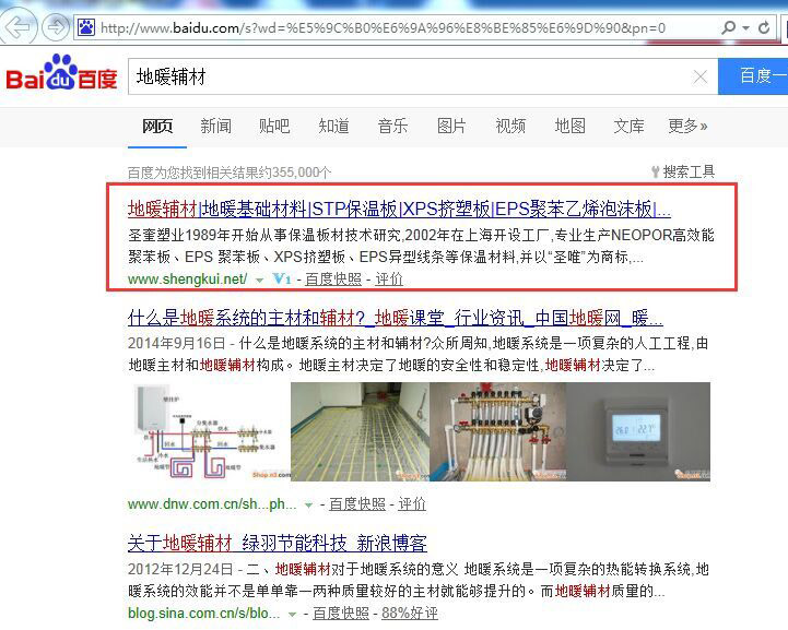 關(guān)鍵詞“地暖輔材”在百度排名:第1頁(yè)第1名